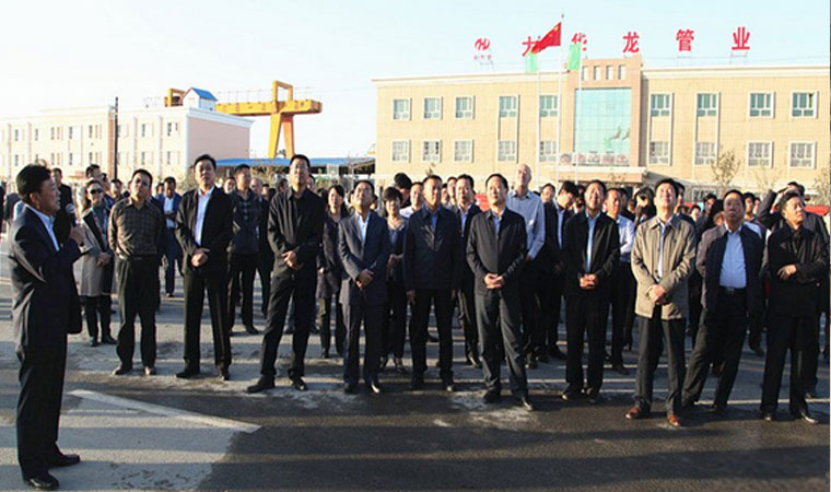 在高新區(qū)新型建材園, 觀摩團(tuán)聽取了高新區(qū)黨工委副書記、管委會(huì)副主任張其軍對(duì)建材園情況介紹并觀摩了新疆大華龍管業(yè)有限公司生產(chǎn)的管道產(chǎn)品。