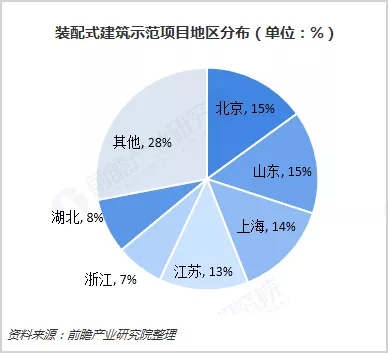 現(xiàn)階段裝配式建筑主要包括混凝土結(jié)構(gòu)、鋼結(jié)構(gòu)、現(xiàn)代木結(jié)構(gòu)三大結(jié)構(gòu)體系。預(yù)制裝配式混凝土(PC)構(gòu)件具有結(jié)構(gòu)性能好、產(chǎn)品質(zhì)量高、施工速度快等特點(diǎn),適用于各類工業(yè)化建筑,具有良好的靈活性和適用性。由于與傳統(tǒng)應(yīng)用較廣的現(xiàn)澆混凝土結(jié)構(gòu)一脈相承,因此也是目前裝配式建筑三大結(jié)構(gòu)體系中推廣較順利,覆蓋范圍較大的一種。從2016年住建部推行的119個(gè)裝配式建筑示范項(xiàng)目來看,混凝土結(jié)構(gòu)占比最大達(dá)46%,其次為裝配式鋼結(jié)構(gòu),占比16%。而裝配式木結(jié)構(gòu)由于在我國(guó)應(yīng)用范圍較小,占比僅有3%。我國(guó)華東地區(qū)在政策支持推動(dòng)之下,裝配式建筑產(chǎn)業(yè)得到良好發(fā)展。從區(qū)域分布看,北京市和山東省裝配式建筑項(xiàng)目較多,占全國(guó)裝配式建筑項(xiàng)目的比重均為15%;其次是上海和江蘇、浙江地區(qū),項(xiàng)目占比分別是14%、13%和7%;湖北省裝配式建筑項(xiàng)目占比為8%。綜合來看,華東地區(qū)仍是我國(guó)裝配式建筑項(xiàng)目最多的地區(qū),僅上海、山東、江蘇和浙江四省市項(xiàng)目占比就已經(jīng)達(dá)到49%。